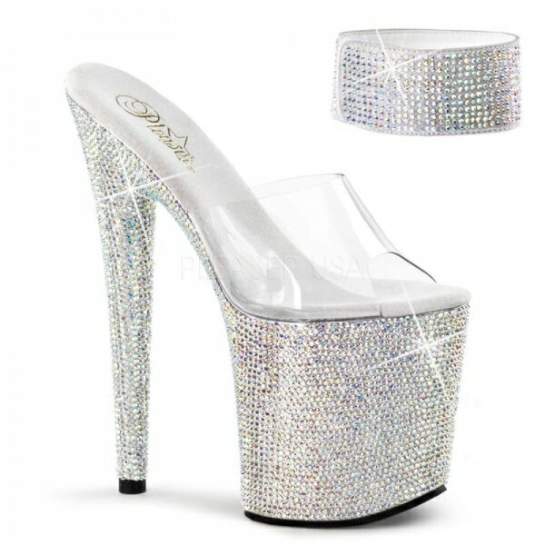 PLEASER【取り寄せ】プリーザー・ラインストーン2WAY厚底クリアミュール/品番:BEJEWELED-812RS/BEJ812RS/20cmヒール/靴/厚底靴/ポールダンス/ダンス/キャバ嬢/ドレス/シューズ/レディース/アッパークリア(透明)/キラキラサンダル/シルバー/銀
