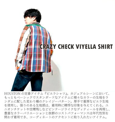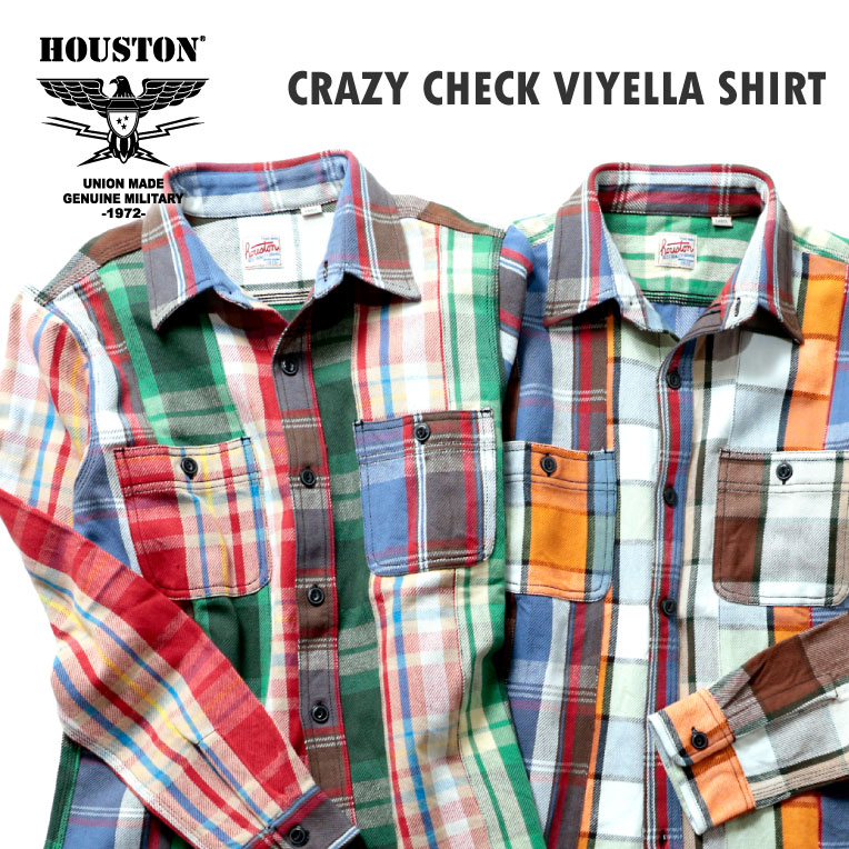 HOUSTON / ヒューストン 40764CZ CRAZY CHECK VIYELLA SHIRT / クレイジーチェックビエラシャツ -全2色- / コットン/ワーク/ビッグサイズ/猫目ボタン/マルチカラー/[40764CZ]