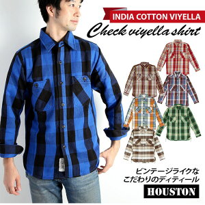 ヒューストン ビエラシャツ 楽天 アメカジ ネルシャツ メンズ houston シャツ ブランド HOUSTON CHECK VIYELLA SHIRT 40776 40764 シンプル ワークシャツ コットン 厚手 長袖 カジュアルシャツ トップス
