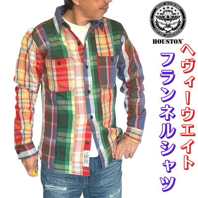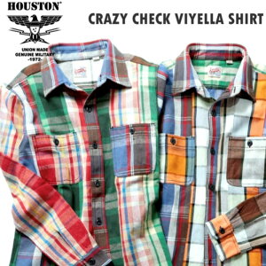【 HOUSTON 】ヒューストンネルシャツ【 40764CZ 】 CRAZY クレージーチェック ヘヴィーフランネル ヴィエラシャツコットン100% 2カラー 厚手 長袖 シャツ メンズ おすすめ アメカジ バイカー ミリタリー 10代 20代 30代 40代 50代 60代 秋冬 M L XL