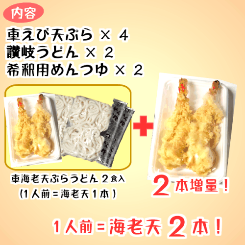 【ポイント5倍】1食に特大えび天2本 簡単調理 冷凍 冷凍食品 セット【車えび天ぷらうどん 特 2食入】天然 特大 車海老 1人前2本 の 天ぷら うどん で食べ応えあり お昼 に 便利 昼食 讃岐うどん えび天 海老天 てんぷら 天うどん ざるうどん ひやしうどん
