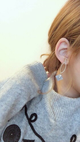 Asymmetry Shizuku square oval hoop pierce/earring(Pink×Gray) E/L byLoretta EL エルバイロレッタ accessory アクセサリー アシンメトリー ひし形 ドロップ ピンク グレー フープ チタン 樹脂 ねじ式 クリップ式 両耳セット ハンドメイド