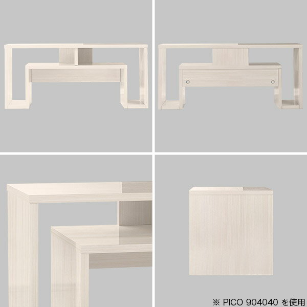 天板下の収納からサイドの収納にかけてL型の収納スペースになっているのが特徴のPICO。