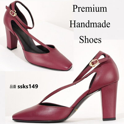 【送料無料】チャンキーヒールアンクルストラップレザーパンプス ハンドメイドシューズ 本革 小さいサイズ 大きいサイズ21.5cm 22cm 22.5cm 23cm 23.5cm 24cm 24.5cm 25cm 25.5cm 26cm