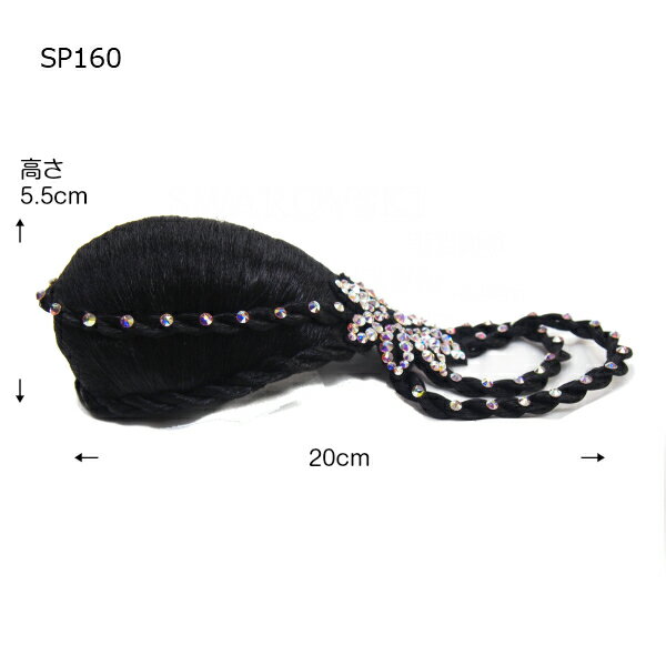 【即納可能】多美咲 シニョン SP160 ブラック 雫型 ストーン 付き 社交ダンス アクセサリー 競技 デモ パーティー おすすめ 髪 飾り つけ毛 ヘアピース お団子 ボールルームヘア ソシアルダンス ダンスヘア ヘアアレンジ 髪あげ モダンヘア スタンダードへア