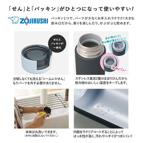 【店内全品PアップMAX20倍★9/5限定】【レビュー特典あり】水筒 象印 シームレス ステンレスマグ 480ml SM-ZA48 シームレスせん タンブラー 水筒 マグ 子供用 真空断熱ボトル ステンレスボトル 直飲み 保温 保冷 マイボトル ギフト プレゼント