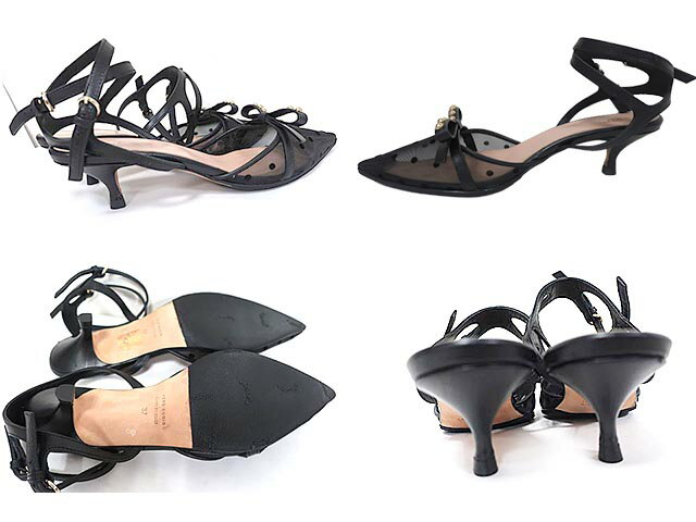 【中古】RED VALENTINO レッドヴァレンティノ 靴 サンダル パンプス メッシュ ドット リボン ブラック サイズ37