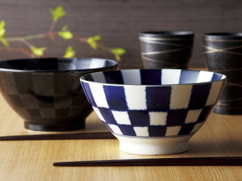 日本製 美濃焼/JAPAN 紺白市松模様 ボウル ラーメン鉢 丼 電子レンジ 食洗器OK 18x9cm 2ヶセット