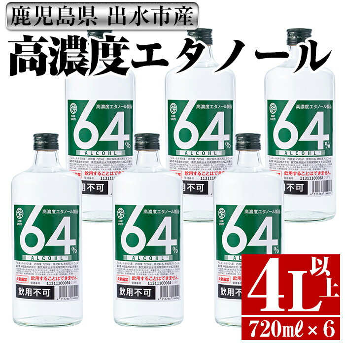 【ふるさと納税】≪数量限定≫日本製!高濃度アルコール!高濃度エタノール製品アルコール64度(64%)6本セット(720ml×6本、計4L超)【酒舗三浦屋】